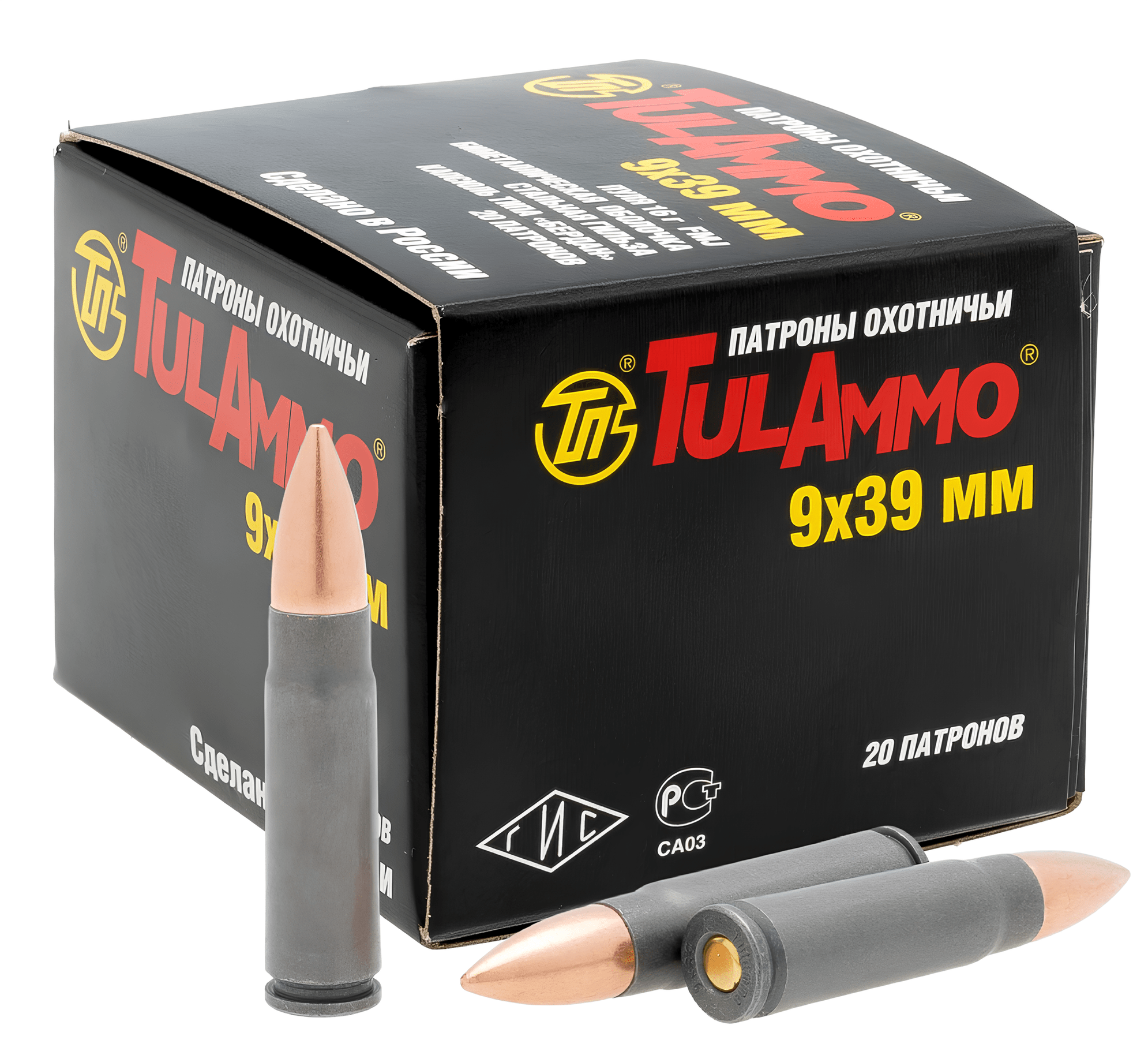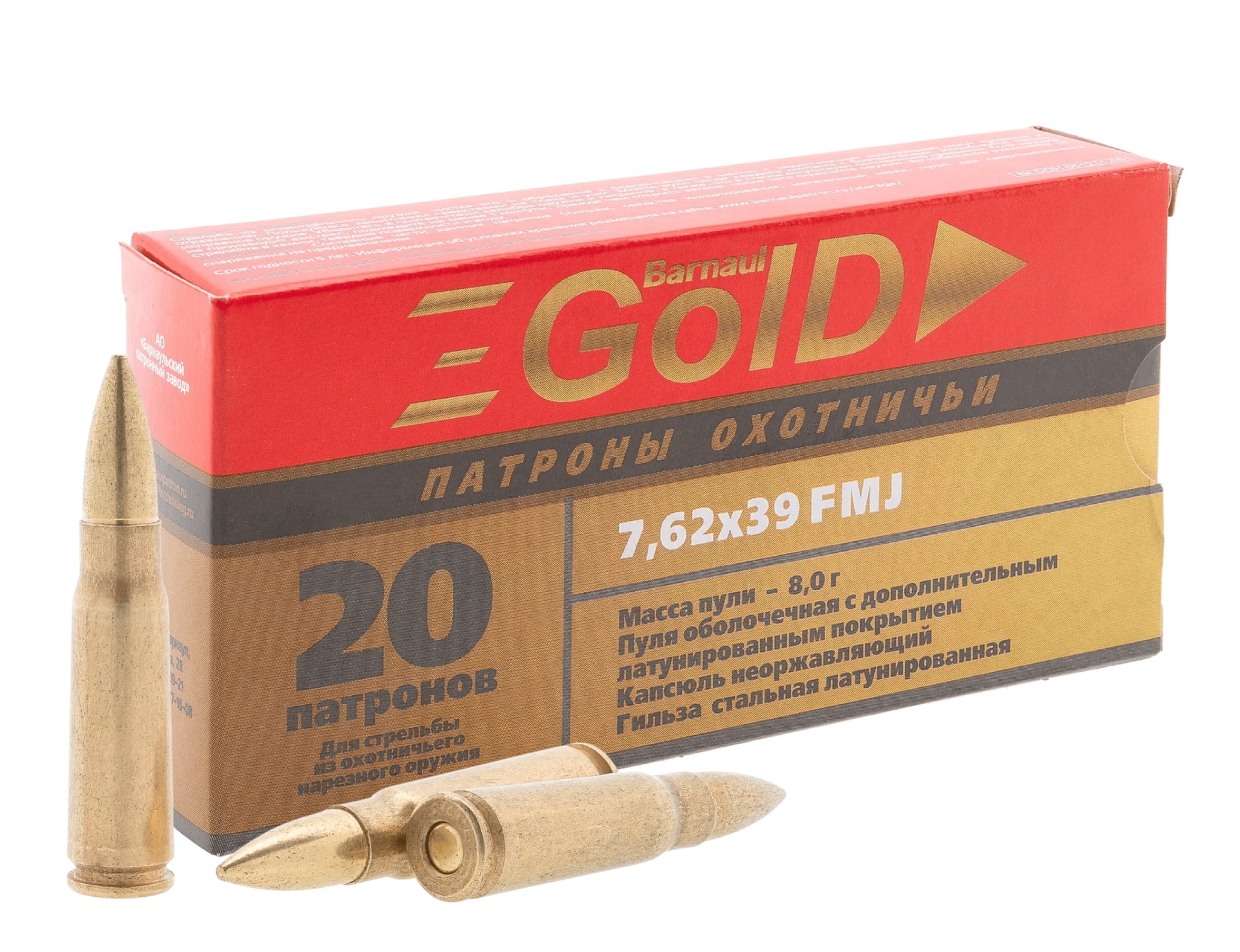 7,62×39 — этот патрон был создан в 1943–1949 годах советскими инженерами Елизаровым и Семиным и до сих пор считается одним из лучших во всем мире. Его особенностью является невыступающая закраина, что позволяет использовать разнообразные пули для охоты на разные виды дичи — от птиц до кабана. Обладает высокими мощностью и останавливающим действием. Вес пули составляет 7,9–8,2 г.