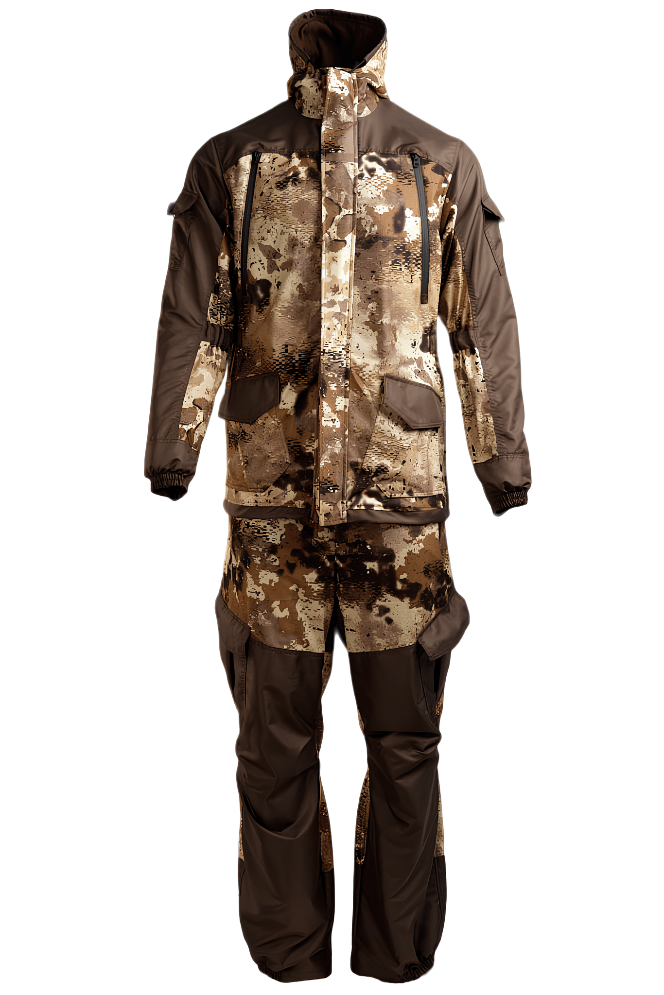 На костюме 6 функциональных карманов для хранения всего необходимого. Регулируемый капюшон защищает от ветра и дождя, а широкий пояс с шлевками надежно фиксирует костюм на теле. Флисовая подкладка весом 180 граммов сохраняет тепло и комфорт при температуре от 0 до +5°C.