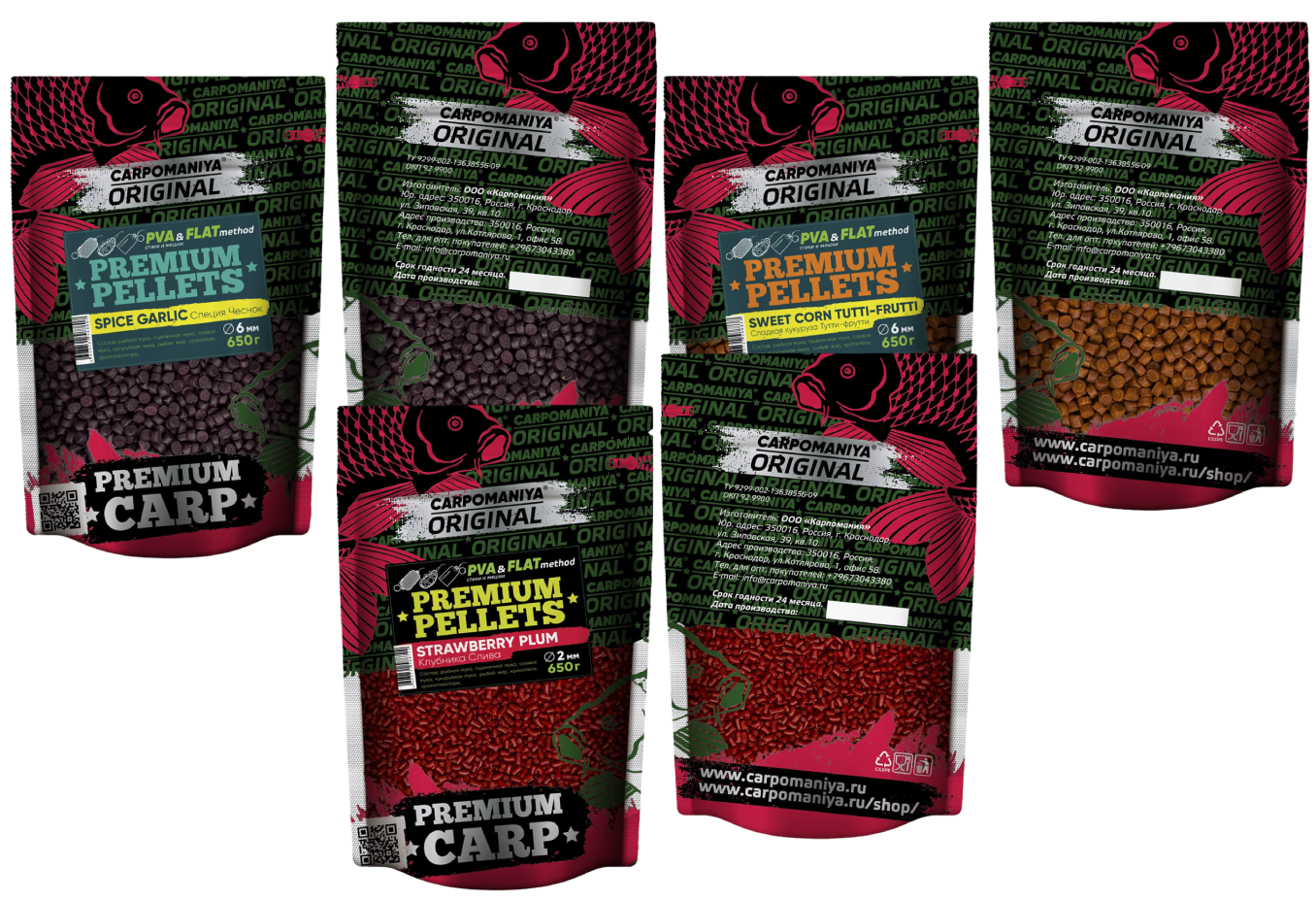 Карп хоть и считается обжорой, но бывают периоды, когда он реагирует только на определенные ароматы. Кормовой пеллетс, производимый для искусственного выращивания рыбы, как правило, не имеет в составе никаких ароматических компонентов, поэтому плохо подходит для карповой рыбалки на большинстве водоемов. Гораздо эффективнее на их фоне выглядит аналогичная продукция рыболовных компаний, предназначенная для любительской и спортивной ловли. Гранулы могут иметь самые разные ароматы, но лучше всего работают: