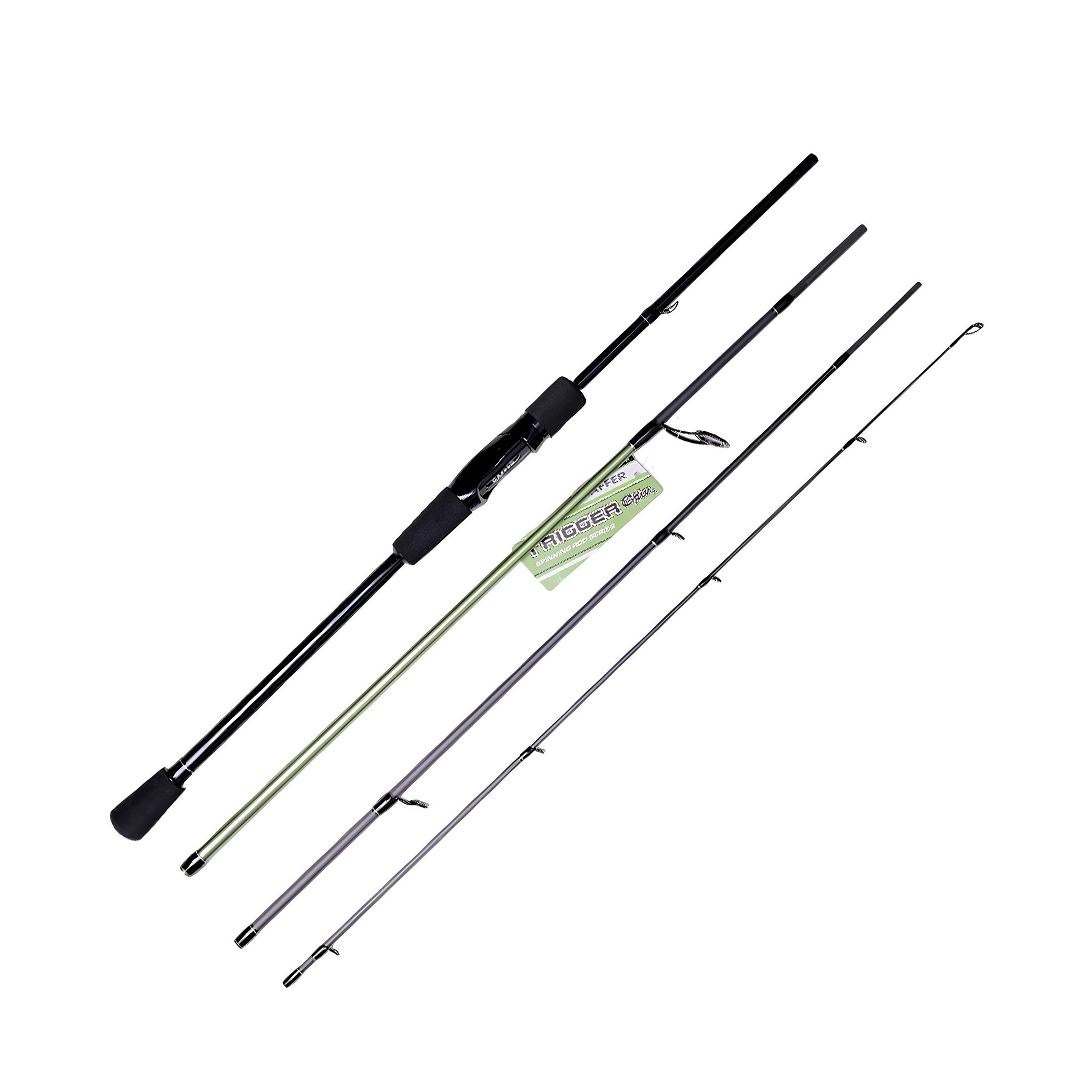Спиннинг Raffer TriggerSpin travel. Универсальная четырех секционная серия удилищ, которая подойдет, как для ловли на воблеры и блесны, так и на джиговые оснастки. Строй спиннинга быстрый, это дает возможность уверенно подсечь добычу и контролировать проводку. Рукоять выполнена в разнесенном варианте из EVA материала.