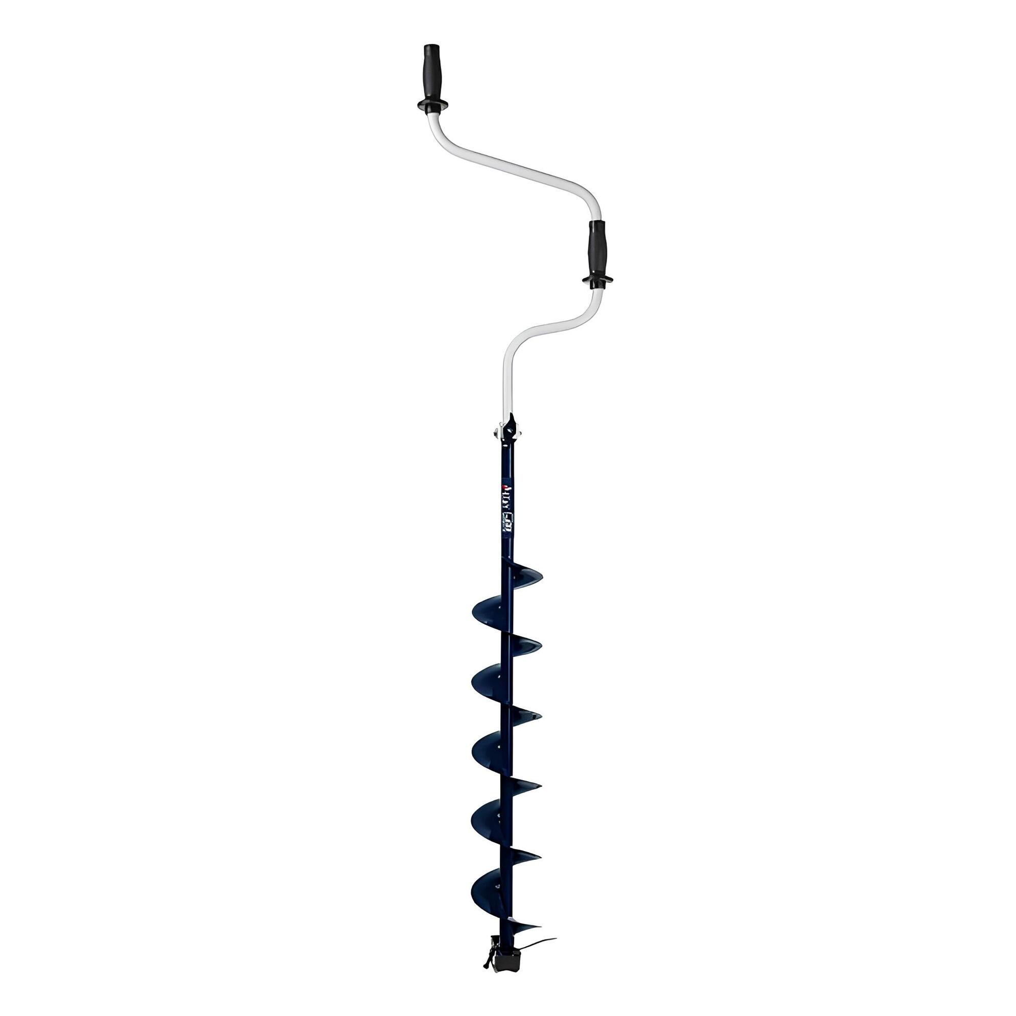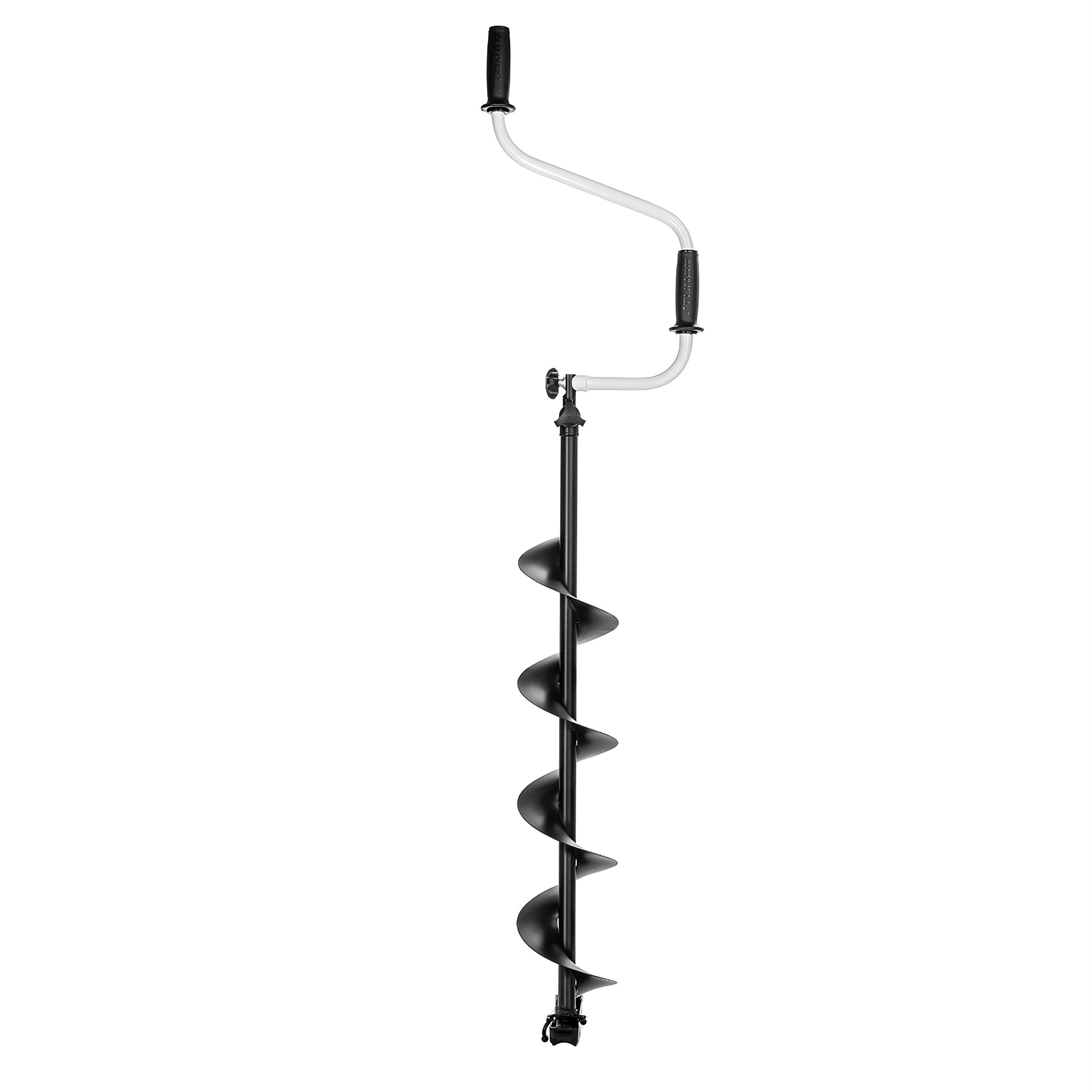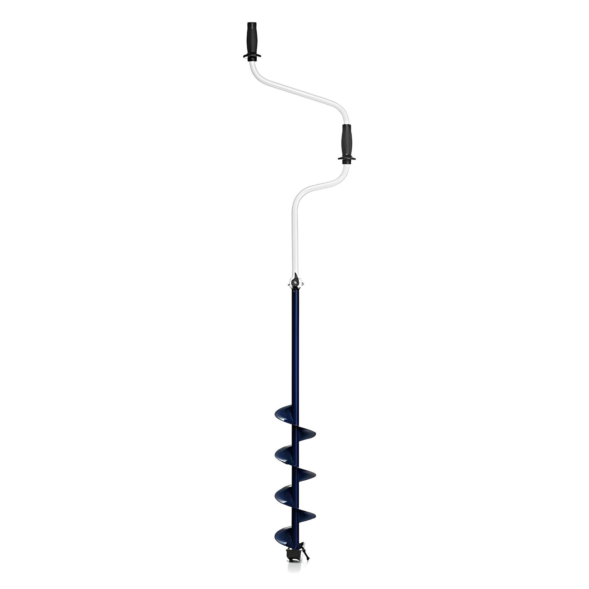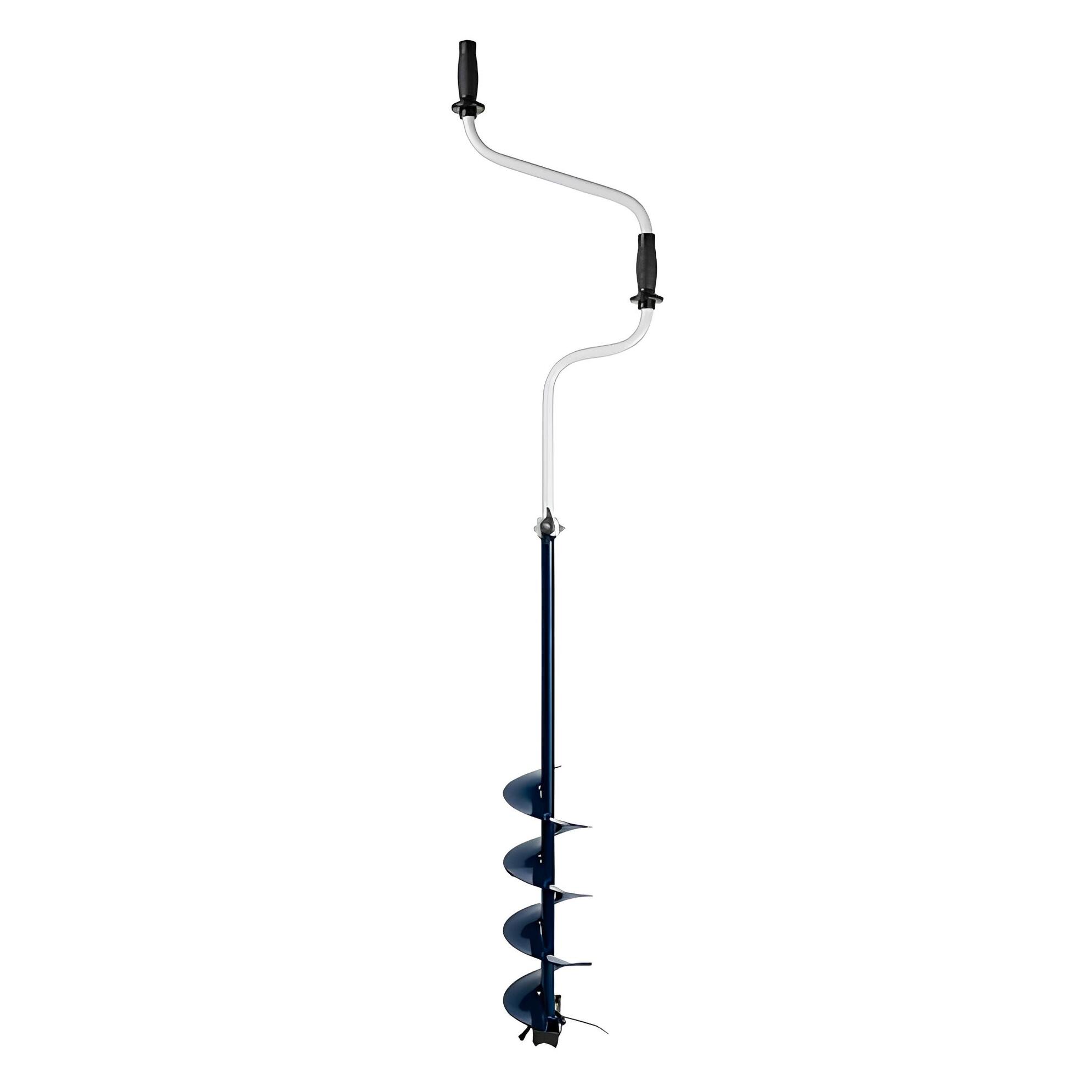 Оснащен двумя рукоятями, одна из которых находится сверху на оси штанги, а вторая вынесена в сторону. В процессе бурения лунки рыболов придерживает бур за рукоятку одной рукой, а другой вращает инструмент. Эта модель считается более устойчивой, так как двумя руками удобнее контролировать положение бура.