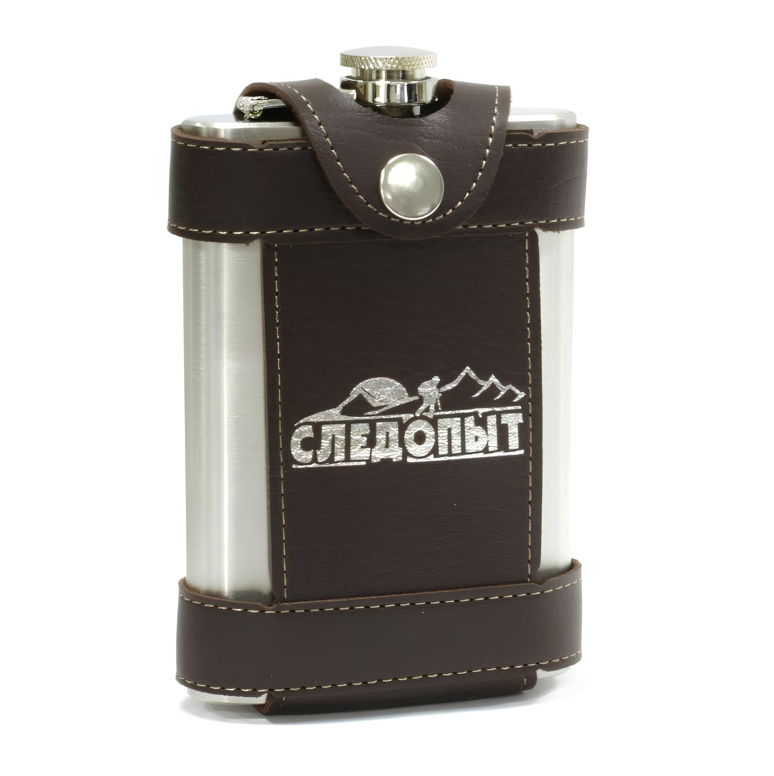 Фляжка «СЛЕДОПЫТ - Flage» в кож. чехле с тиснением, ~260 мл, цв. корич
